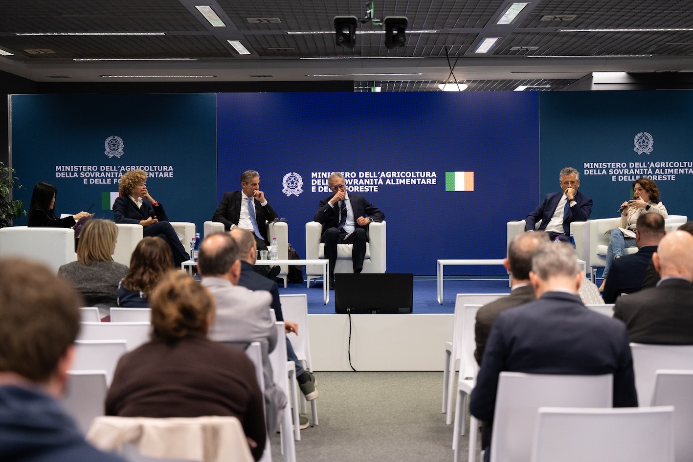 Il dibattito è quindi entrato nel vivo con gli interventi dei rappresentanti istituzionali. Marco Lupo, Capo Dipartimento della sovranità alimentare e dell’ippica MASAF, ha richiamato la necessità di trovare un equilibrio tra tutela del sistema produttivo e apertura ai mercati internazionali, rimarcando l’urgenza di misure concrete a supporto immediato delle imprese. In continuità, Giuseppe Blasi, Capo Dipartimento della politica agricola comune e dello sviluppo rurale MASAF, ha evidenziato come la PAC debba evolvere per rispondere con maggiore efficacia alla velocità dei mercati globali, rafforzando gli strumenti a sostegno della competitività del settore.